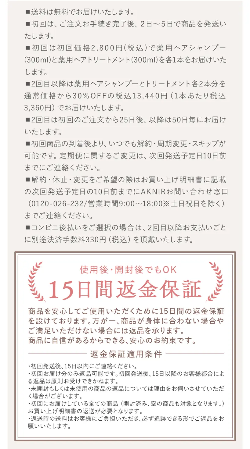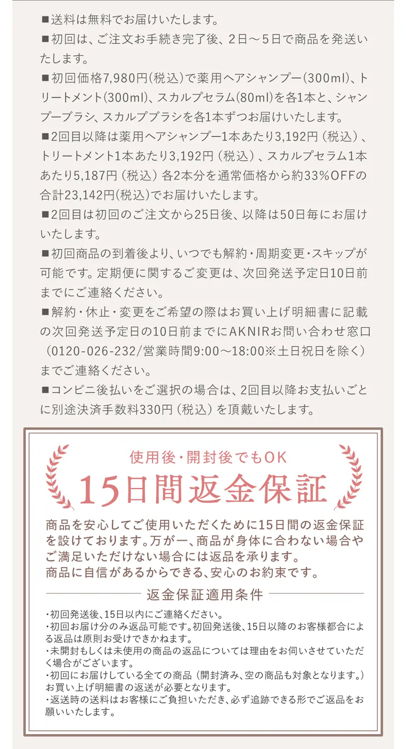 解約をご希望のお客様は、お買い上げ明細書に記載されている次回発送予定の10日前までにお電話(0120-026-232/営業時間 9:00~18:00 ※土日祝日を除く)にてご連絡ください。