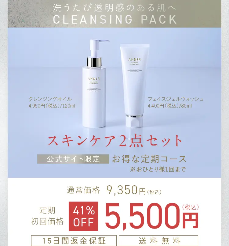 ■初回価格5,500円(税込)でクレンジングオイル(120ml)、フェイスジェルウォッシュ(80ml)を各1本ずつお届けいたします。
